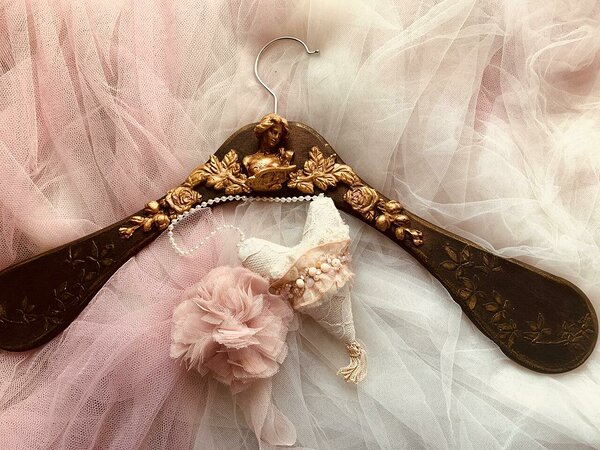 Tüdruku pildiga käsitöö riidepuu, vanaroosa