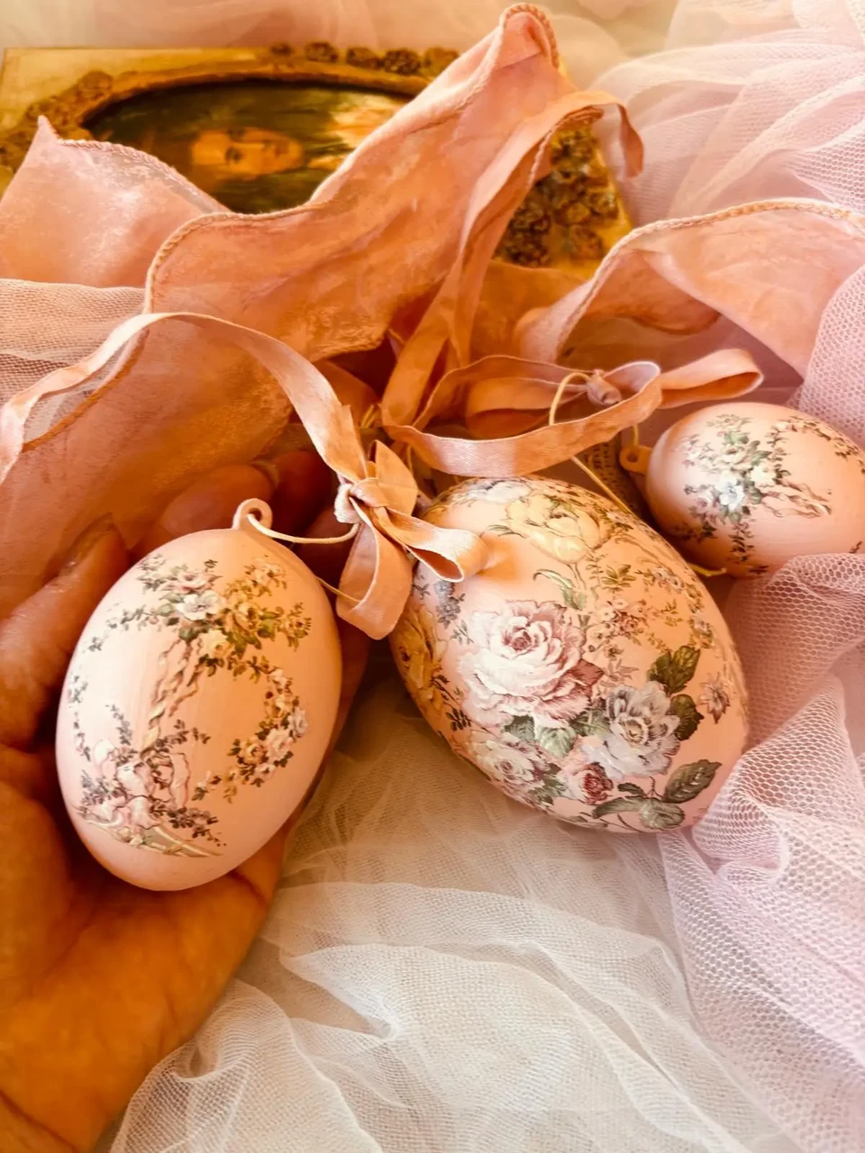 Komplektis 3 tk erinevas suuruses roosat muna.