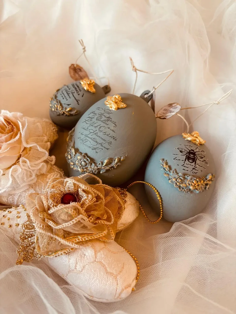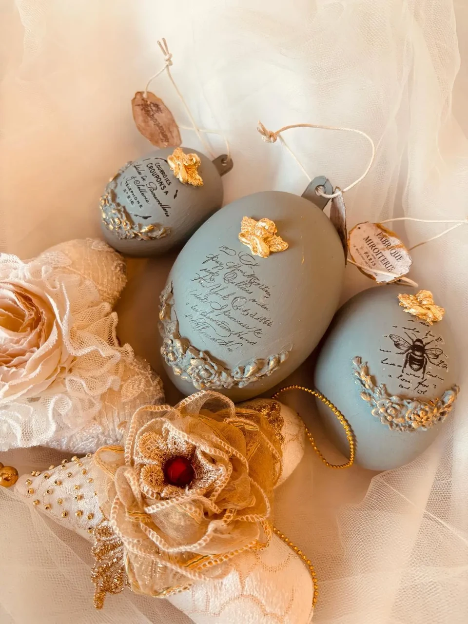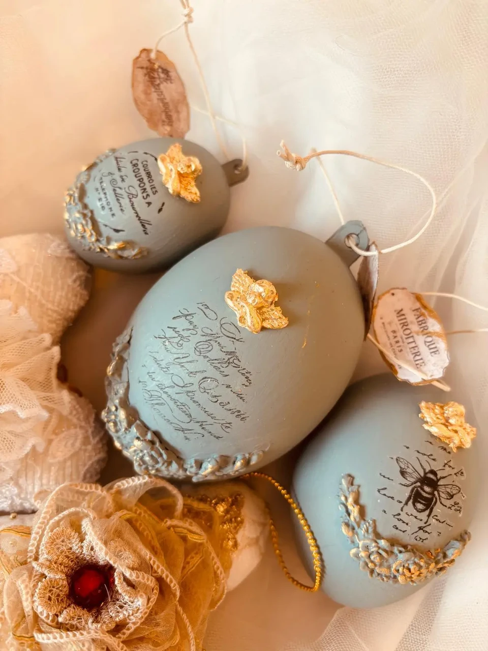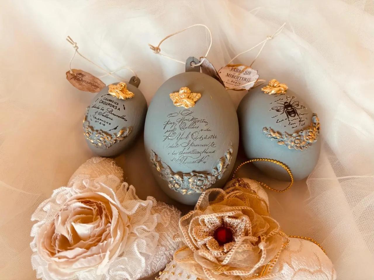 Komplektis 3 tk erinevas suuruses vanaroosat muna.